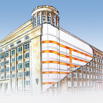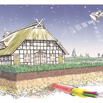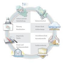 Geschäfts- und Infografik Visualisieren von Kontexten und technischen Zusammenhängen Einbettung in Werbemittel Illustration manuell und digital